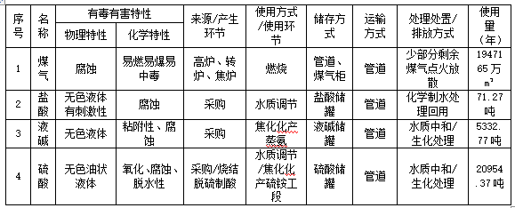 1.使用有毒有害原料情况表